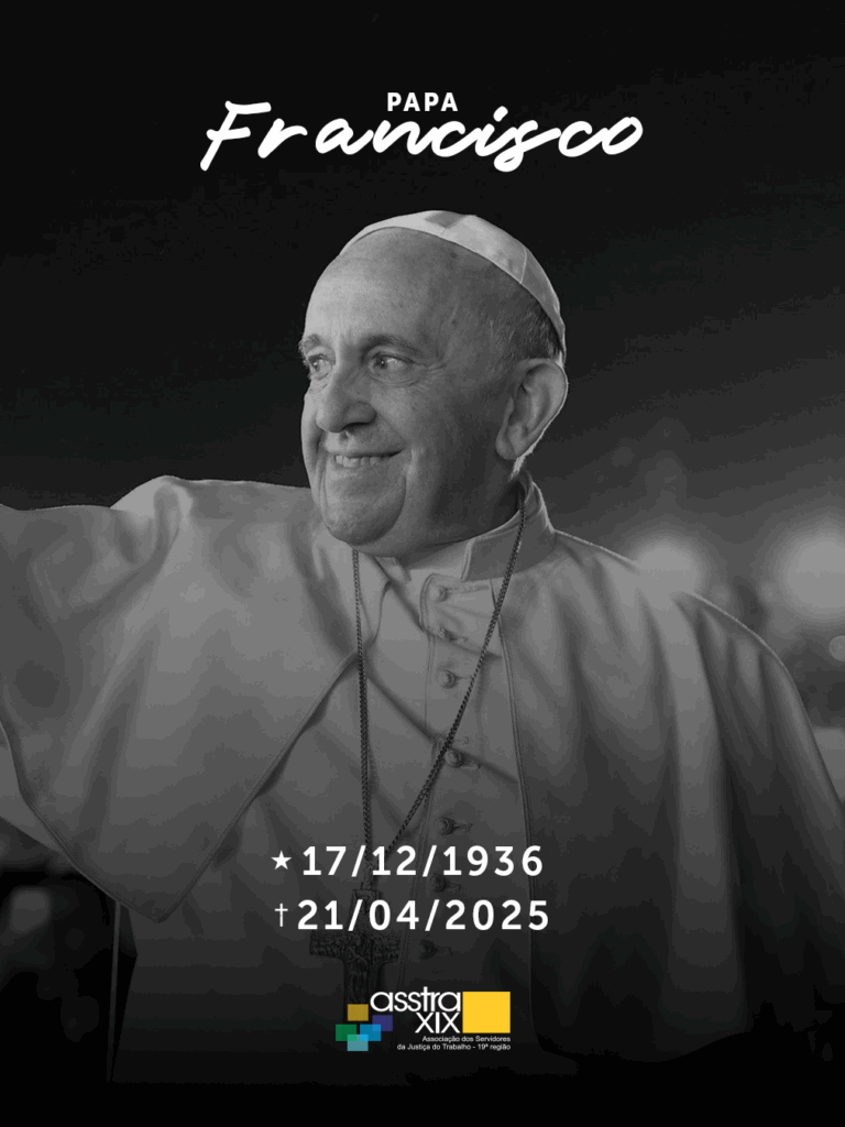 A Associação dos Servidores da Justiça do Trabalho da 19ª Região (Asstra 19) manifesta seu profundo pesar pela partida do pontífice, reconhecido mundialmente por sua simplicidade, sua defesa dos mais vulneráveis e seu incansável compromisso com a paz, os direitos humanos e a justiça social.